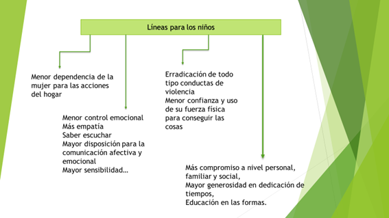 A continuación, vamos a presentar una serie de líneas básicas para trabajar inicialmente con los niños y unas líneas básicas para trabajar inicialmente con las niñas. No porque se pretenda hacer de nuevo una diferencia entre ellos/as, sino porque las necesidades educativas para llegar a una igualdad de género real, pensamos, que son diferentes. Quizás el no haber sido conscientes desde el principio de esta cuestión, sea el punto de partida en el que hemos fallado, sea el motivo por el que aún no hemos conseguido el objetivo de la igualdad tal como lo deseamos.